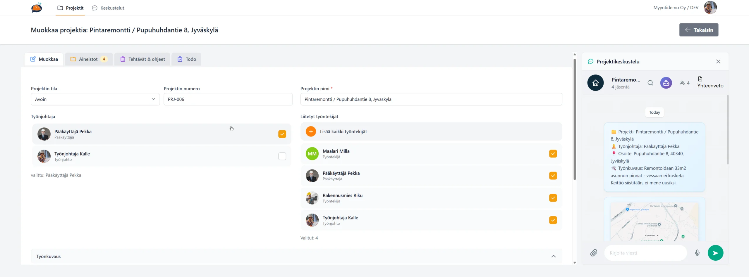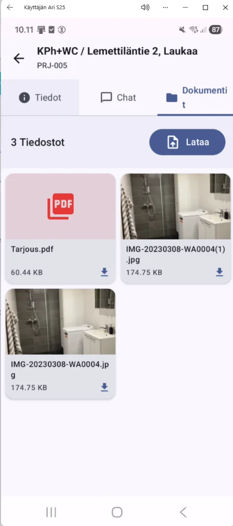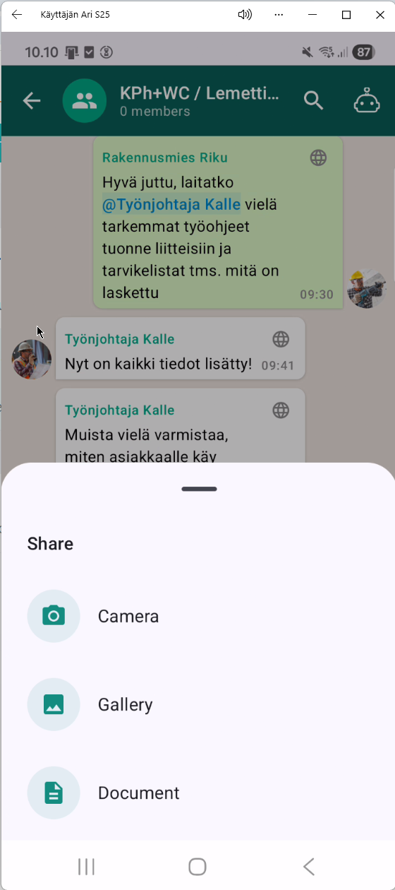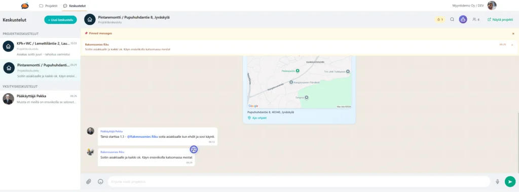 Viestit, kuvat, äänitteet ja dokumentit tallentuvat automaattisesti oikealle työmaalle. - Työnjohto pysyy ajan tasalla ilman soittoja