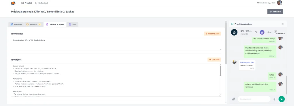 Työmaan arjen viestintä ja dokumentit kuuluvat yhteen paikkaan. Helposti ja joustavasti.