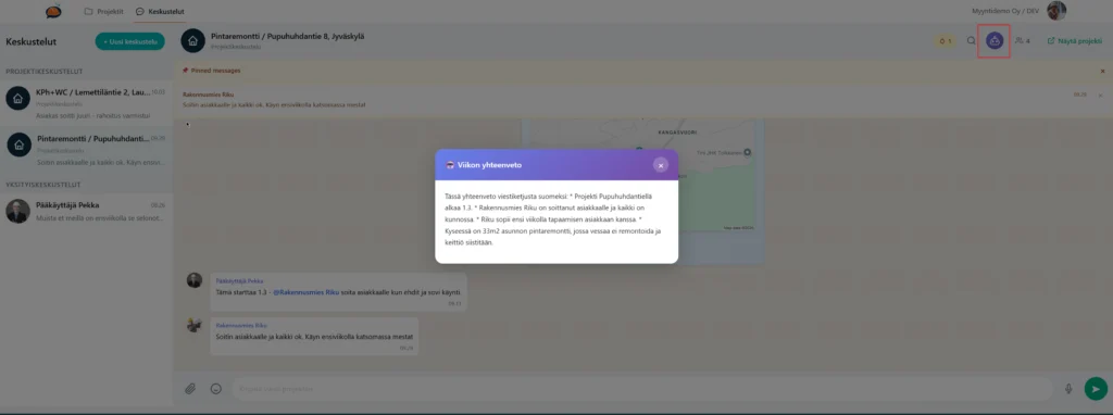 Tekoäly luo työmaan viikkoraportin automaattisesti ja muistuttaa tärkeistä asioista push-ilmoituksilla.