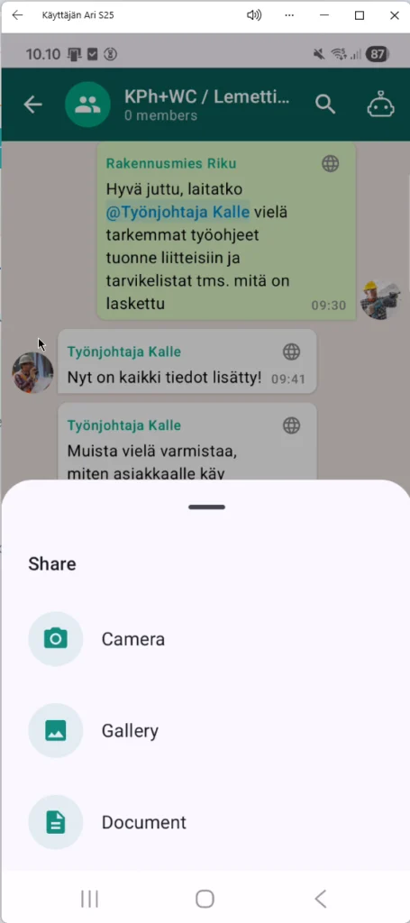 Ei pelkkä chat. Vaan työmaan yhteinen tilannekuva.