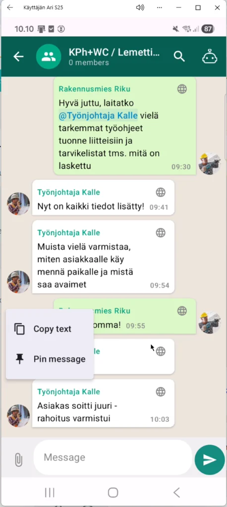 Rakennuslalla työmaan arjen ketterä ja nopea viestintä hoidetaan nykyisin usein kuluttajakäyttöön tarkoitetuilla pikaviestimillä. Pikaviestin on nopea ja helppo apuväline, mutta työmaa tarvitsee keskustelun lisäksi rakennustyömaan arjen tarpeisiin ratkaisun.