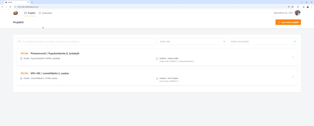 Kehitämme SiteTalkia yhdessä rakennusalan ammattilaisten kanssa, jotta viestintä työmailla ja projekteissa olisi selkeämpää, nopeampaa ja dokumentoitua. Koekäyttöön osallistuvat saavat käyttöönsä ratkaisun ennen virallista julkaisua ja pääsevät vaikuttamaan sen kehitykseen. Ota yhteyttä ja kysy lisää koekäytöstä.
